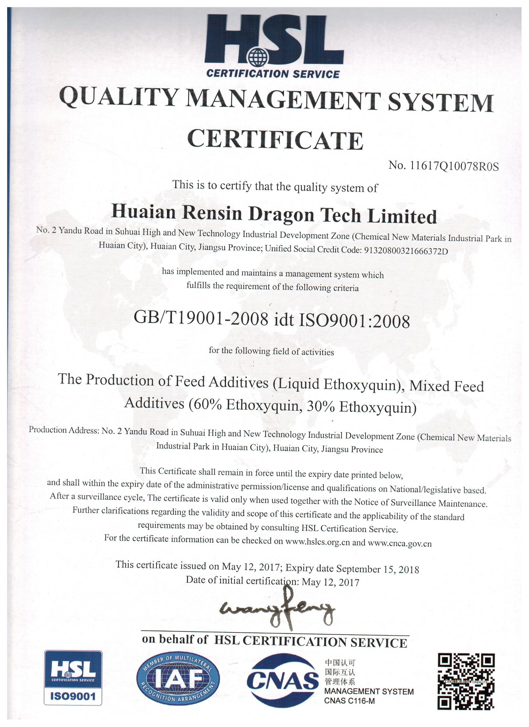潤龍科技乙氧基喹啉自投產以來,生產穩(wěn)妥、安全、質量可靠,生產理念堅持走全球一體化道路,所投產的產品全部基于國際質量水平的技術基礎之上實施,主營產品“乙氧基喹啉”已家喻戶曉,暢銷亞洲、歐洲、南美洲、北美洲、大洋洲等30多個國家和地區,年出口占比高達80%以上。同時,與國內多家百強企業形成強力的合作關系。